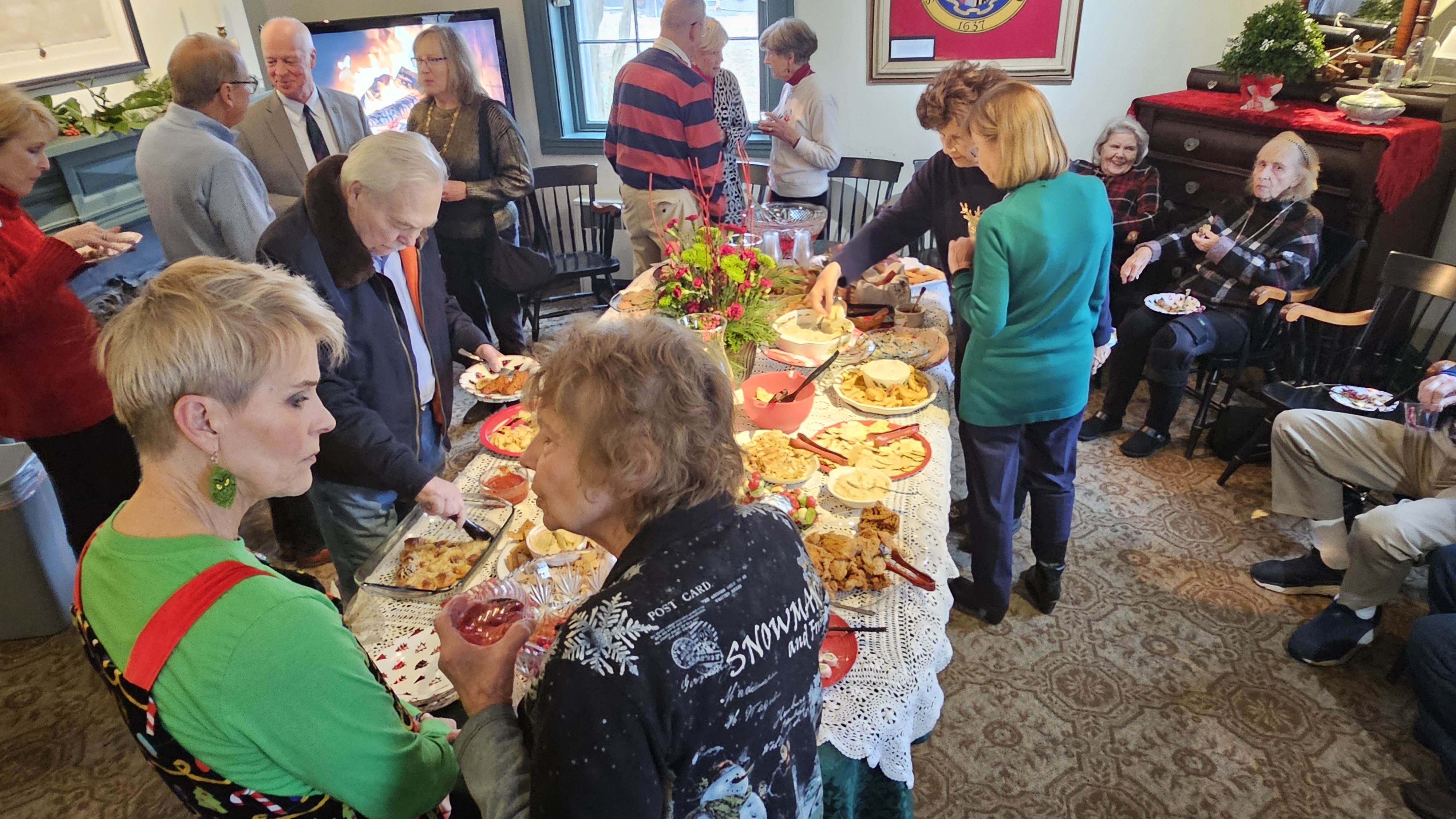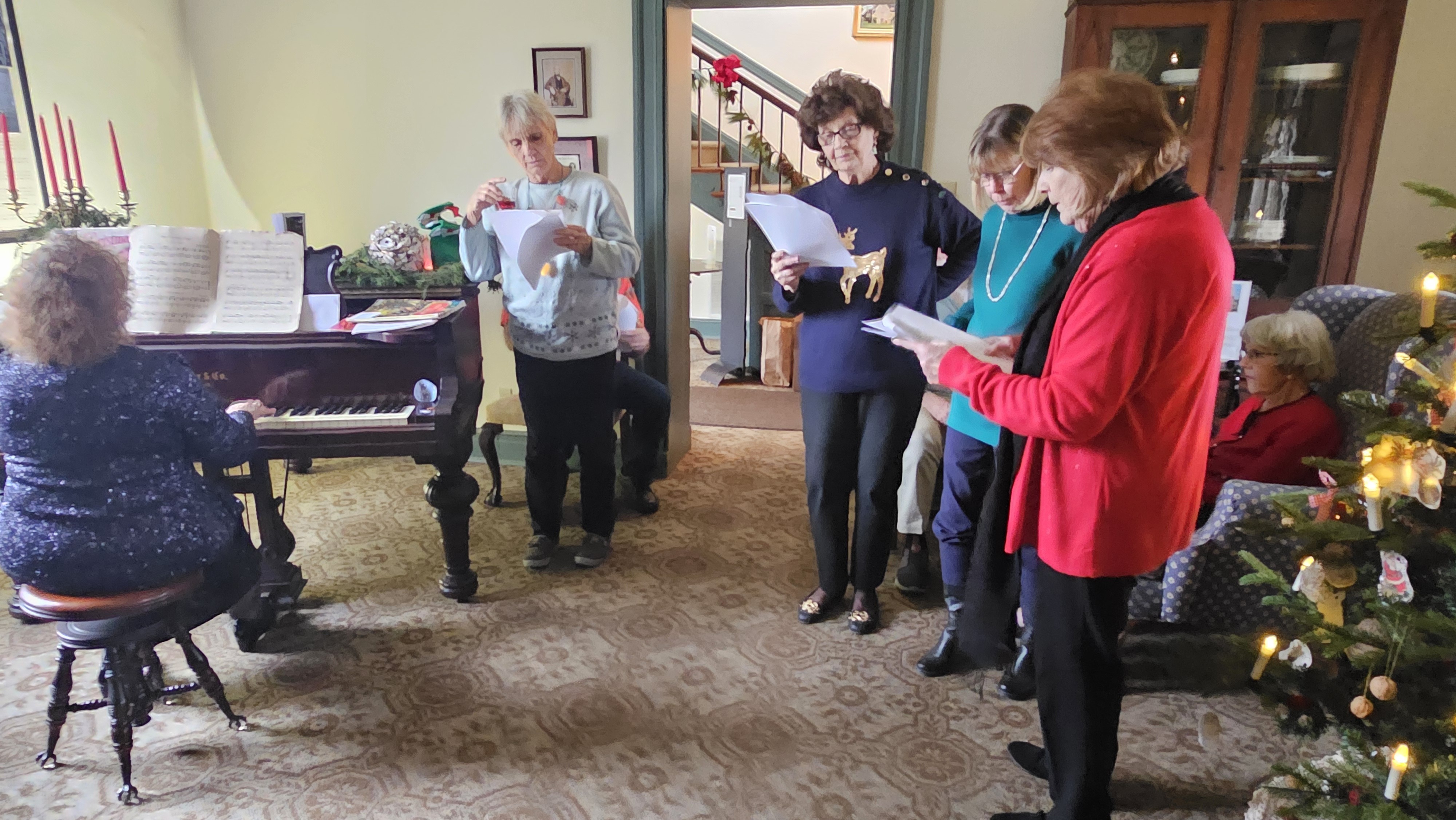 On the heels of the Volunteer Reception, the Fourth Annual Open House was held on Saturday December 6th, at Tudor Hall. Volunteer Karen Wood inspired this Advent gathering back in 2022. This year, over forty new and old members gathered. Karen and her team decorated the grand old building. Christmas music for the occasion was provided by Ellynne Davis and Lois Stephenson. You will find several photos further down in this newsletter.