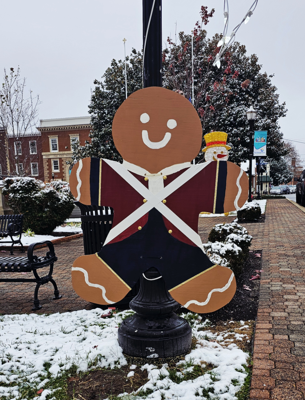 The Gingerbread Man dressed in Revolutionary War garb above is just one of the Historical Society's festive Christmas treats this year. The handsome fellow is standing guard in Leonardtown Square, alert for Mr. Scrooge or Mr. Grinch bent on spoiling Christmas. Volunteer Michelle Carroll along with help from Director Steve Gass brought the lad to life.
